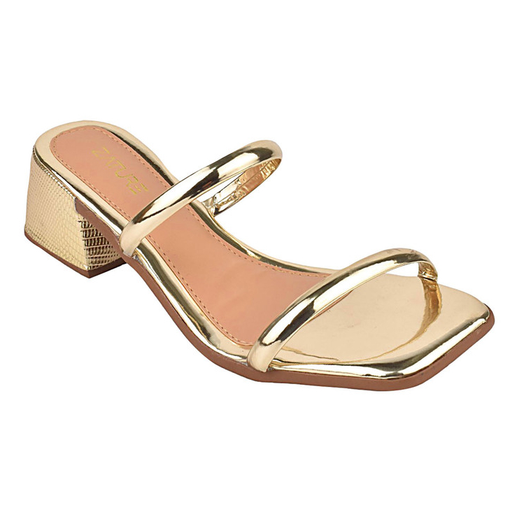Sandália Feminina Salto Bloco Tamanco Feminino Calce Fácil Macio Leve Tira Metalizado Brilho Festa