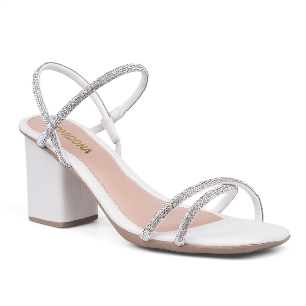 Sandália Feminina Salto Bloco Tiras De Strass Cruzadas
