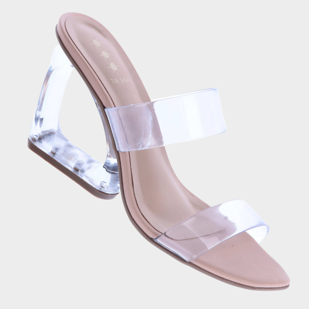 Sandália Feminina Salto Geométrico Acrílico Transparente Moderna Elegante Confortavél