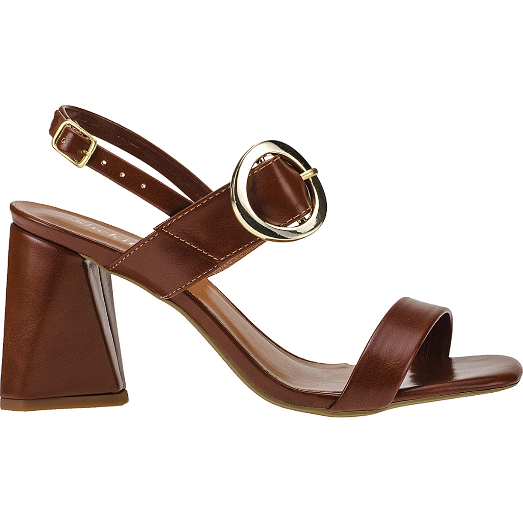 Sandália Feminina Salto Geométrico Shekinah Fivela Redonda Elegante Moderna Moda Festa Delicada