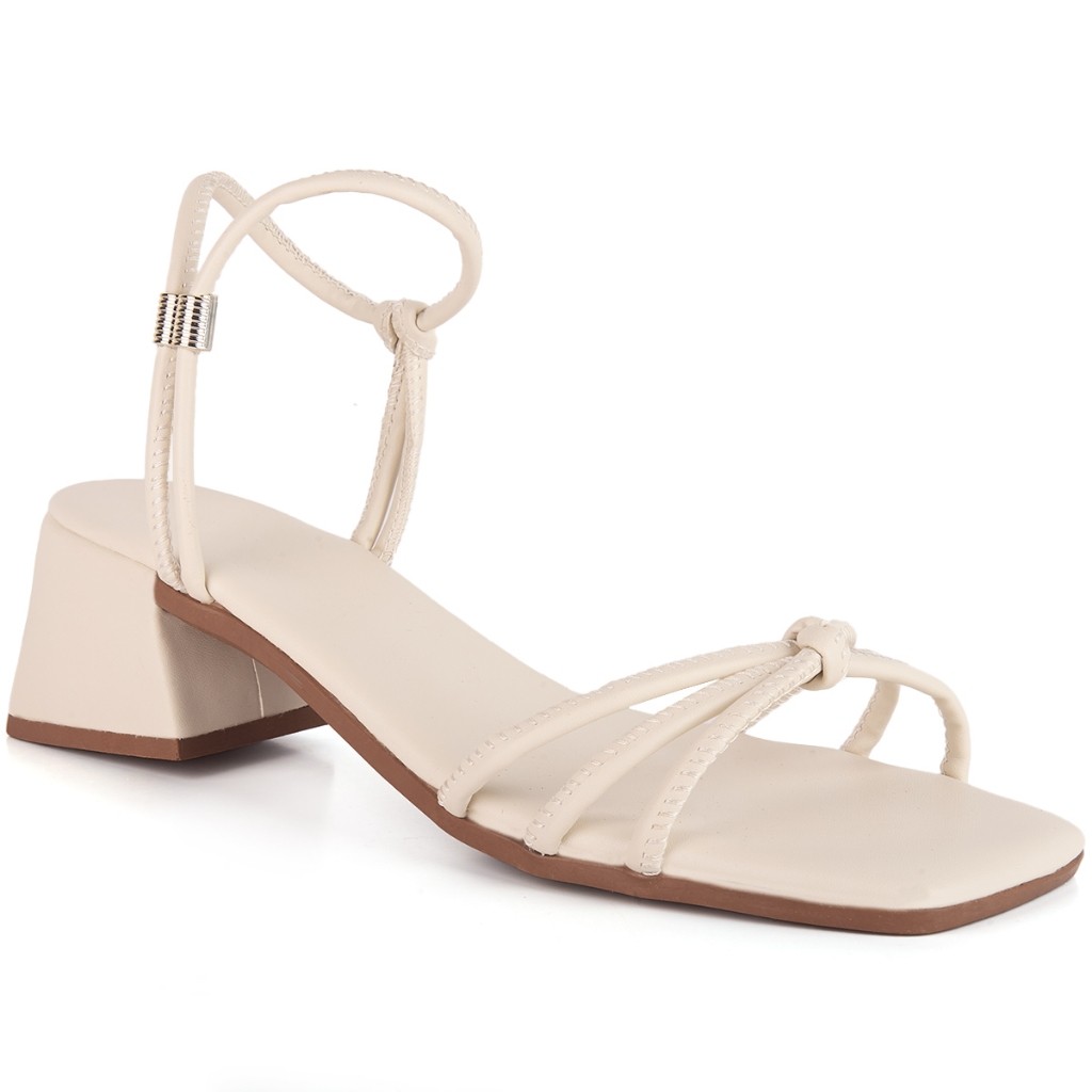 Sandália Feminina Salto Médio Bloco Grosso Calce Fácil Tiras com Nó Confortável e Macia