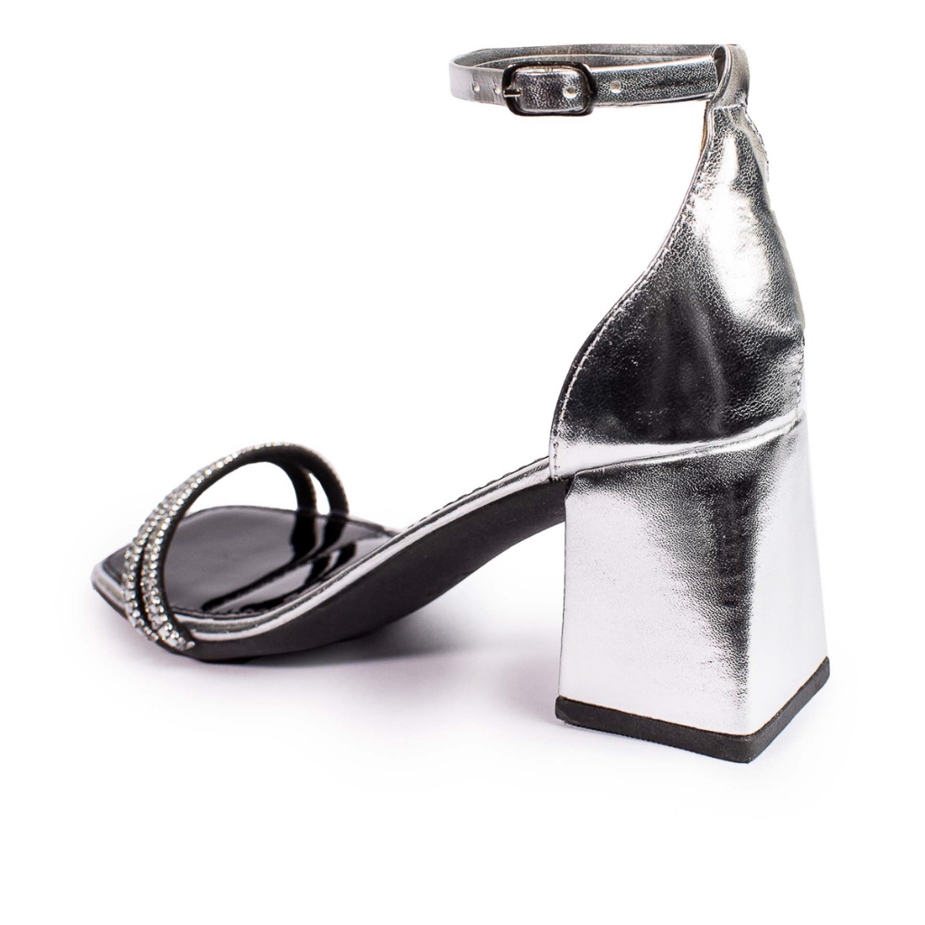 Sandália Feminina Salto Quadrado Bloco Grosso Baixo Brilho