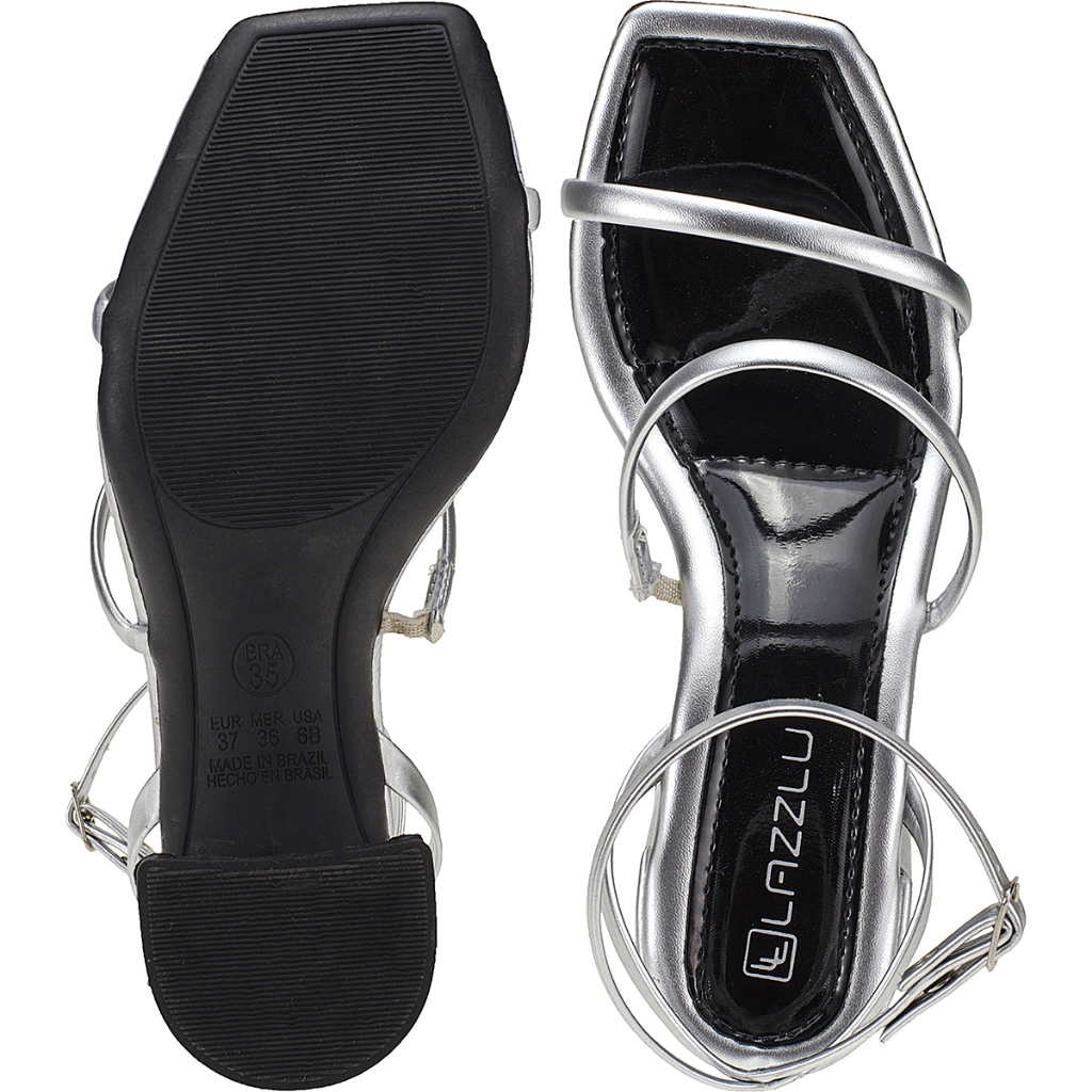 Sandália Feminina Salto Quadrado Bloco Grosso Brilho Lazzlu