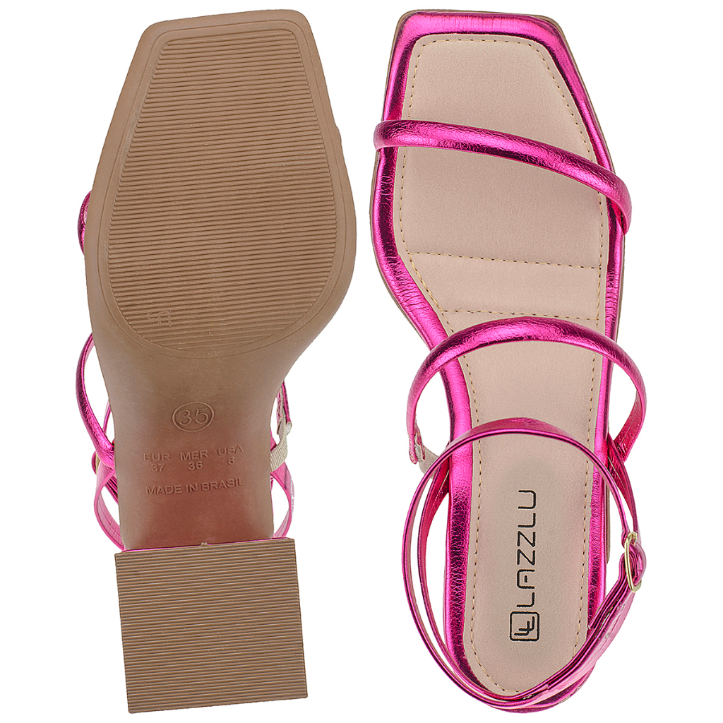 Sobre a Marca: A Marca LAZZLU chegou para oferecer a você cliente, QUALIDADE, CONFORTO ESTILO E OUSADIA. Somos uma marca de MODA, queremos trazer para você tudo que há de mais moderno e atual nesse seguimento, design, cores, materiais e tendências. Nossa meta principal é a satisfação do cliente, oferecendo excelentes produtos, com rapidez na entrega e principalmente ter um bom relacionamento com os clientes, fazendo com que eles voltem a comprar, fidelizando a marca pelo produto e serviço prestado. SOBRE O PRODUTO: Solado: Salto Bloco PVC antiderrapante; Cabedal externo: Tiras em Napa Soft Brilhosas; Material interno: Napa Soft; Palmilha: Espuma extremamente confortável; Salto: Altura de 9 cm Fechamento: Fivelas e tira de afivelar com 5 furos de regulagem mais ajuste com elástico; Foto: Real do produto. SUGESTÕES DE USO: Você Mulher que merece e gosta de estar na moda, uma boa indicação, combina tanto para a noite como para o dia, tiras brilhosas que estão super em alta e vc não vai ficar de fora; Cores versáteis que combina com tudo, cores metalizadas tendências desse verão, sem falar desse salto última moda, algo que vc não pode deixar de ter, é claro se vc quiser estar atualizada com a última moda. Combina com vários looks, shorts, saias, calças, vestidos. TAMANHOS E MEDIDAS DOS PÉS: 34 = 23 cm 35 = 23,7 cm 36 = 24,3 cm 37 = 25 cm 38 = 25,6 cm 39 = 26,3 cm Obs. Calçado com forma normal, seguir as orientações de medidas mas normalmente calça o número correto. ENVIO/ENTREGA: Enviamos nossos produtos pela frota do próprio marketplace, ou seja o transporte e entrega são feitos pelos próprios, proporcionando a vc uma entrega super segura e rápida. Nós da LAZZLU preparamos e despachamos nossos produtos dentro de 24 horas, de segunda a sexta. Todos nossos produtos vão em caixa individual e ainda embalada em envelope plástico resistente. COMO CUIDAR DO SEU LAZZLU: - Lave com produto neutro e água; - Use escova de cerdas macias; - Seque a sombra; - Não use alvejantes; - Não deixe de repouso com produto; MIX DE PRODUTOS LAZZLU: Por sermos uma marca de MODA, nosso mix de produtos é bem completo, com produtos e cores super atuais, temos: Sandálias: Rasteiras, saltos, anabelas, flatform, plataformas, papetes; Chinelos: chinelos e slides; Botas: coturno salto, coturno plataforma, coturno tratorado e botas cano médio; Tênis: Casual, Slipon, tênis meia; Sapatilha: Mule, sapatilha, salomé e scarpins. Ah!!! Mais um detalhe, VC sempre vai poder contar com alguém da EQUIPE LAZZLU para te ajudar. Esperamos que vc tenha uma experiência MARAVILHOSA conosco. Obrigada.