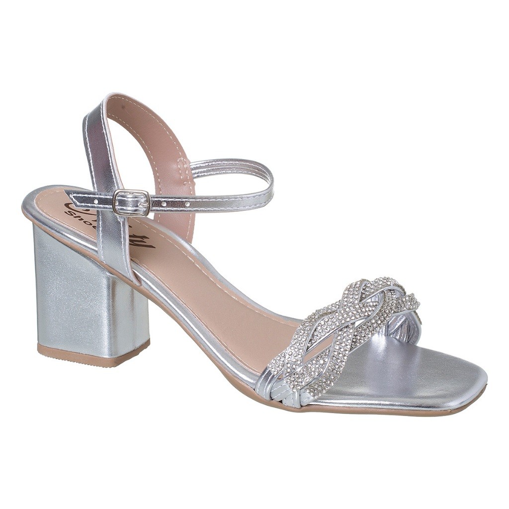 Sandália Feminina Social Metalizado Strass Elegante Confortável Salto Alto Grosso Casual Festa Naty Shoes