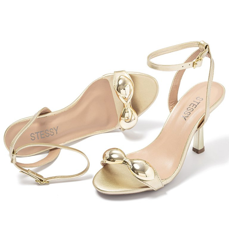 Sandália Feminina Stessy Salto Alto Enfeite Laço Metalizado Chic Tendência Original Confortável