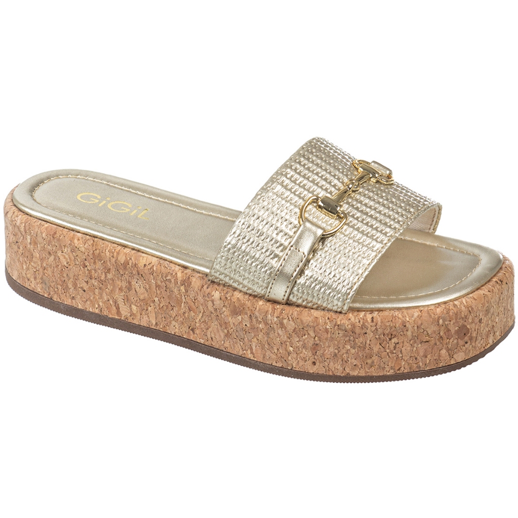 Sandália Feminina Tamanco Flatform Plataforma Enfeite Bridão Metalizado Confortável Estilosa GiGiL