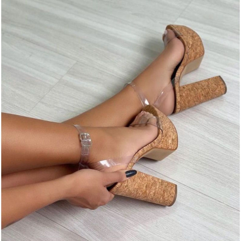 Sandália Feminina Transparente Salto Grosso confortável