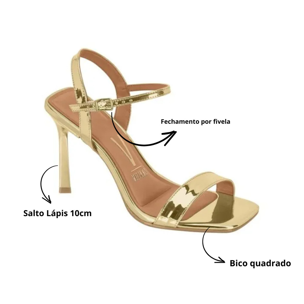 Sandália Feminina Vizzano Salto Lápis Stilleto Metalizado Glamour Conforto