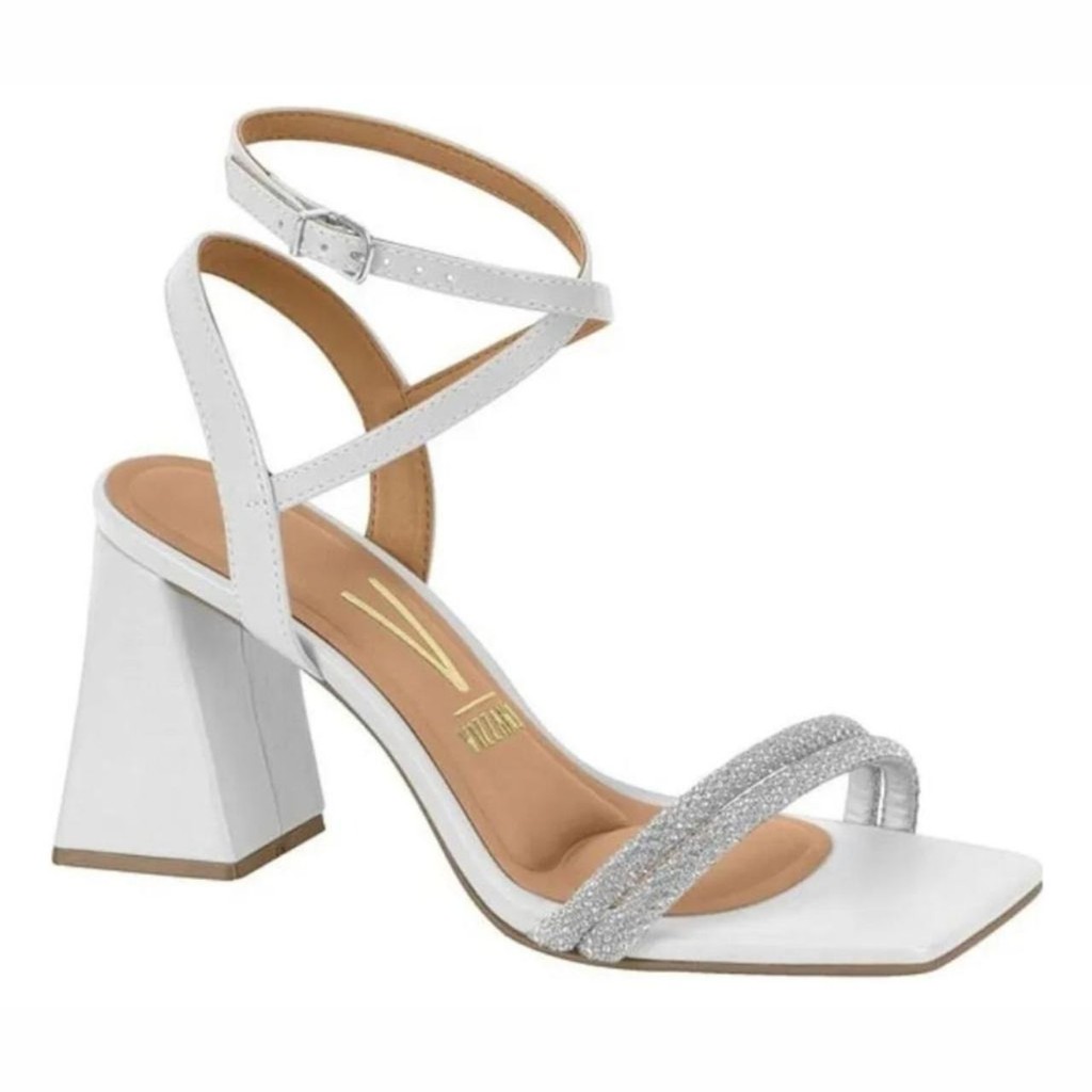 Sandália Feminina Vizzano Salto Médio Bloco Grosso Brilho Strass Conforto