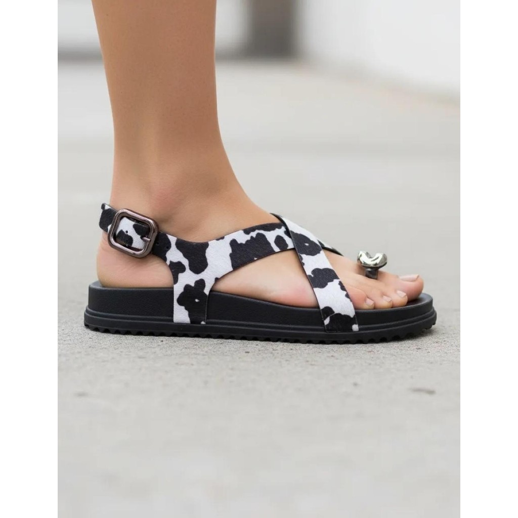 Sandália Flatform Pixolé Animal Print Branco/Preto