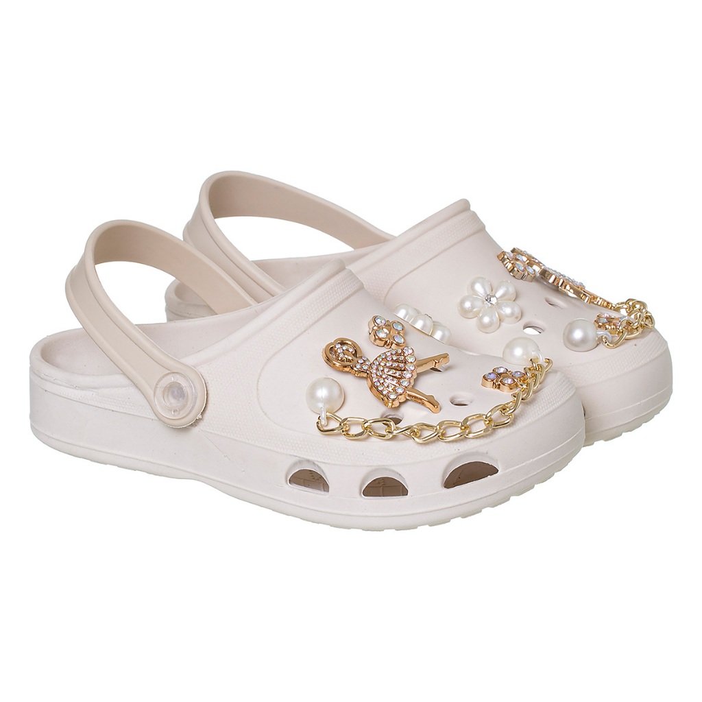 Deixe a sua pequena cheia de estilo e conforto com a Sandália Babuche Infantil! Confeccionada em borracha resistente e de alta qualidade, essa babuche garante durabilidade e bem-estar para os pezinhos durante todo o dia. Seu material é leve, confortável e super fácil de calçar. Ele é ideal para acompanhar em qualquer momento do dia, seja em passeios, escola ou até o uso diário. O grande diferencial está nos pingentes variados que acompanham o produto. Eles vão separados o que permite que a criança personalize a sandália do seu jeito, deixando-a única e divertida! (Importante: os pingentes acompanham o produto separadamente, e não vão fixados na sandália.) Composição: Material: Borracha Palmilha: Borracha Solado: Borracha Tabela de Medidas: 25/26: 17,0 CM 27/28: 18,0 CM 29/30: 19,5 CM 31/32: 21,0 CM 33/34: 22,0 CM