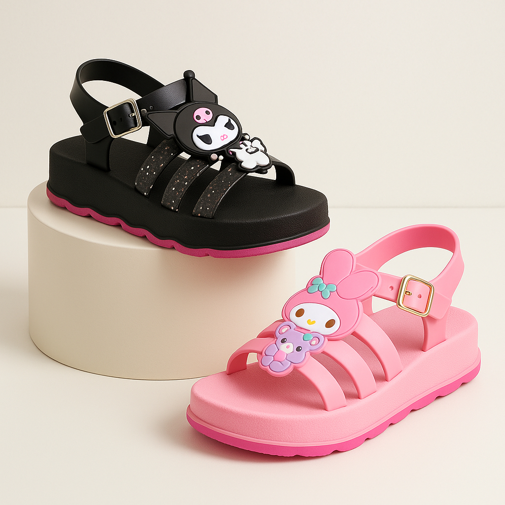 Sandália infantil bebê feminina menina Kuromi My Melody confortável leve macia fivela lançamento Sandália infantil feminina Kuromi e My Melody perfeita para meninas que amam conforto, estilo e personagens fofos. Confeccionada em material macio, leve e durável, garante praticidade no dia a dia e segurança ao caminhar. Ideal para diversas ocasiões, do passeio ao uso diário, unindo moda infantil e diversão. 🔹 Destaques do Produto ✅ Personagens Kuromi e My Melody – design exclusivo e superfofo ✅ Confortável e leve – ideal para o uso diário das crianças ✅ Solado antiderrapante – mais segurança em cada passo ✅ Material resistente e macio – pensado para o bem-estar infantil ✅ Fecho com fivela ajustável – praticidade para calçar e melhor ajuste ✅ Moda infantil estilosa – perfeita para compor looks casuais Garanta já a sandália infantil Kuromi e My Melody e proporcione conforto, estilo e diversão para sua pequena em todas as ocasiões! 💖