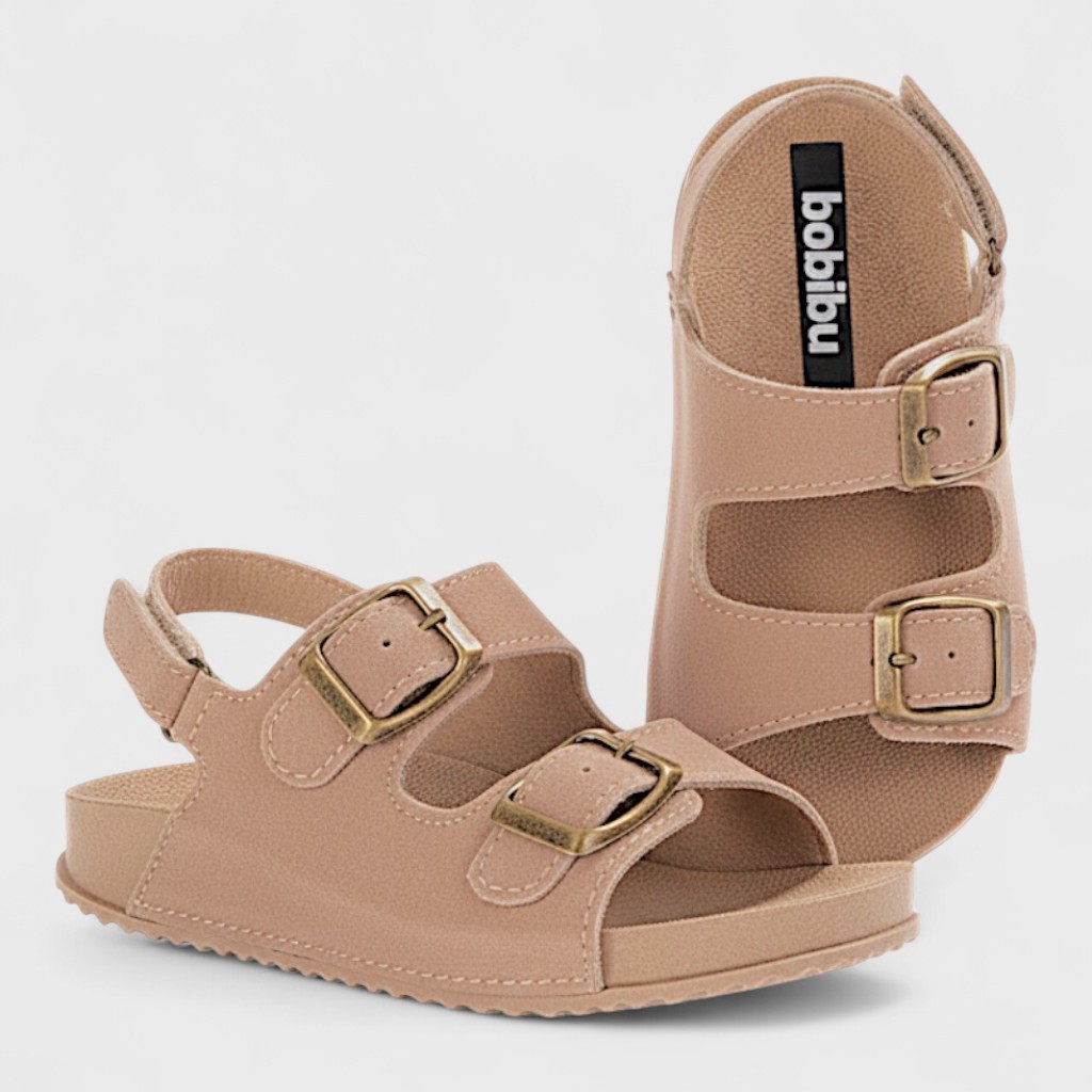 Sandália Infantil Birken Fechamento Traseiro Fivela Dupla Unissex Camurça Pele/Nude