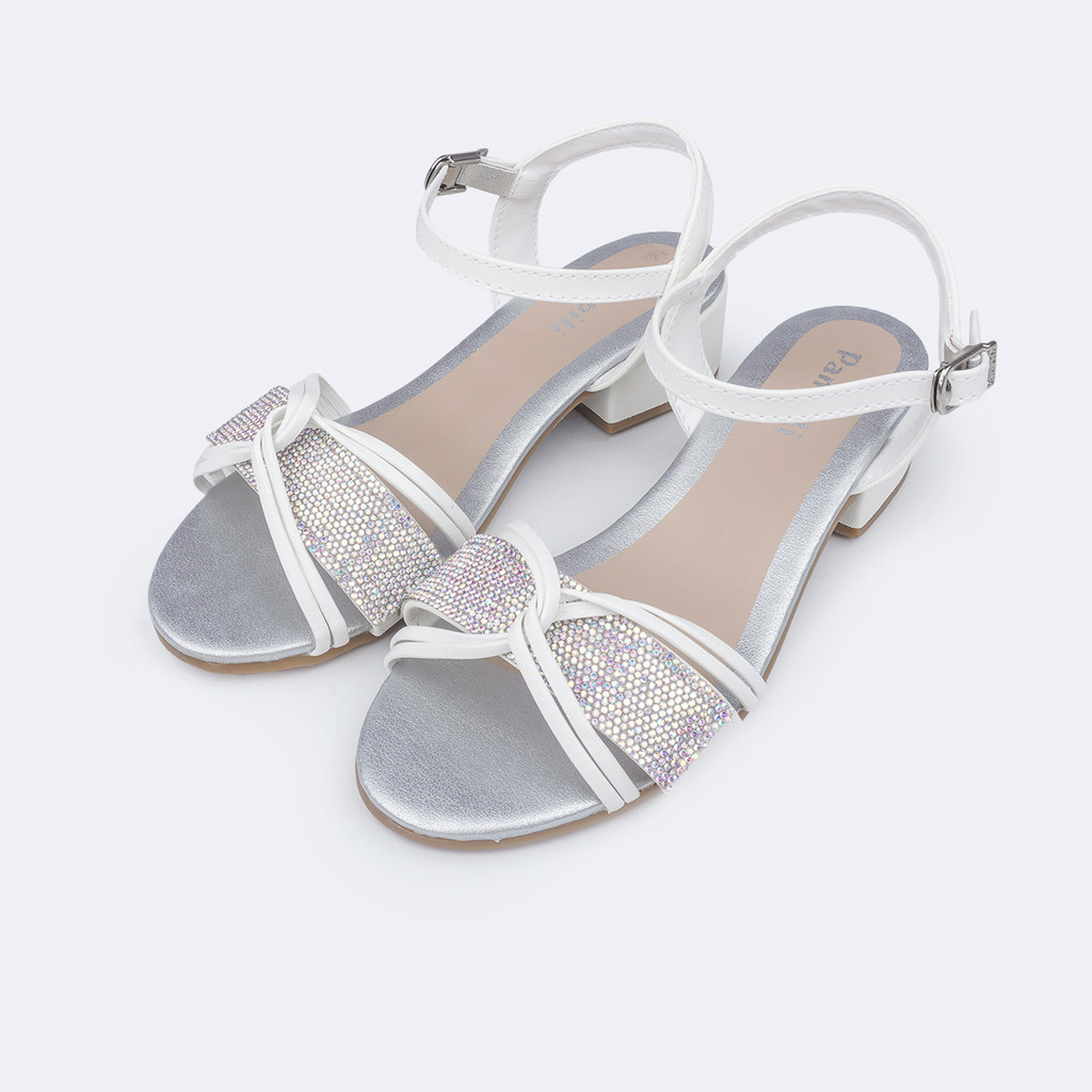 Sandália infantil feminina em sintético com parte frontal em manta de strass e tiras cruzadas, sofisticada para ocasiões especiais! O salto bloco é revestido em sintético, um estilo mais mocinha e delicado, porém sem perder o conforto que os pezinhos das nossas meninas precisam! Sandália infantil com palmilha confortável e solado emborrachado, que possui aderência com o chão, proporcionando flexibilidade, menor desgaste e maior resistência térmica. Fechamento com fivela easy, sem pino, facilitando o calce. Aposte! Sandália infantil com salto é perfeita para a menina curtir festas com estilo e conforto! Sandália com saltinho fica linda comvestido infantil,conjunto infantil feminino,saia e shorts. Altura do salto: 3 cm