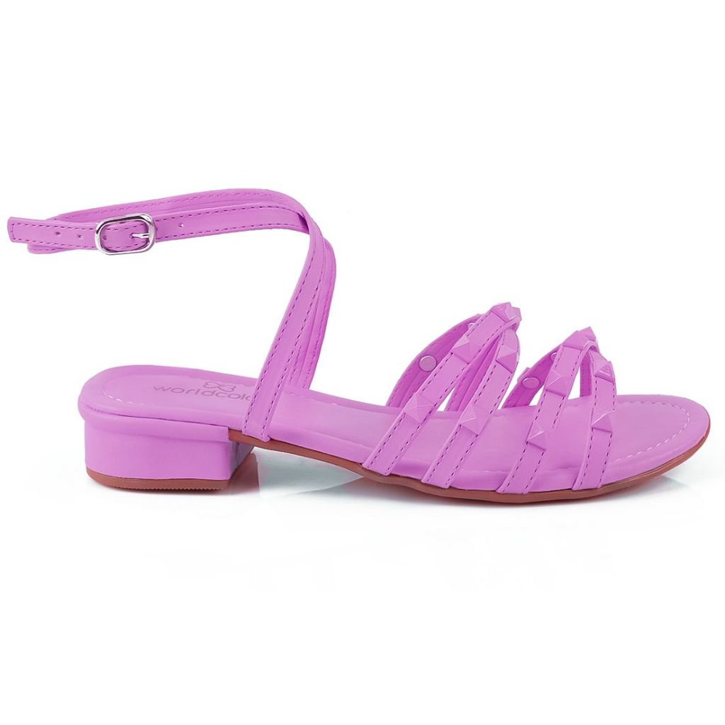 Sandália Infantil Feminina De Saltinho WorldColors Paris - Hortencia,omodelo tem saltinho baixo de 3cm, palmilha confortável e acolchoada , solado com base emborrachada . Traz tiras finas com spikes cruzadas sobre os dedos e peito do pé, fechamento por fivela sobre o tornozelo. A Sandália é moderna e estilosa, prática de calçar, extremamente leve, garantindo um toque único nos looks. Perfeita para quem busca conforto e muito estilo para o dia a dia!