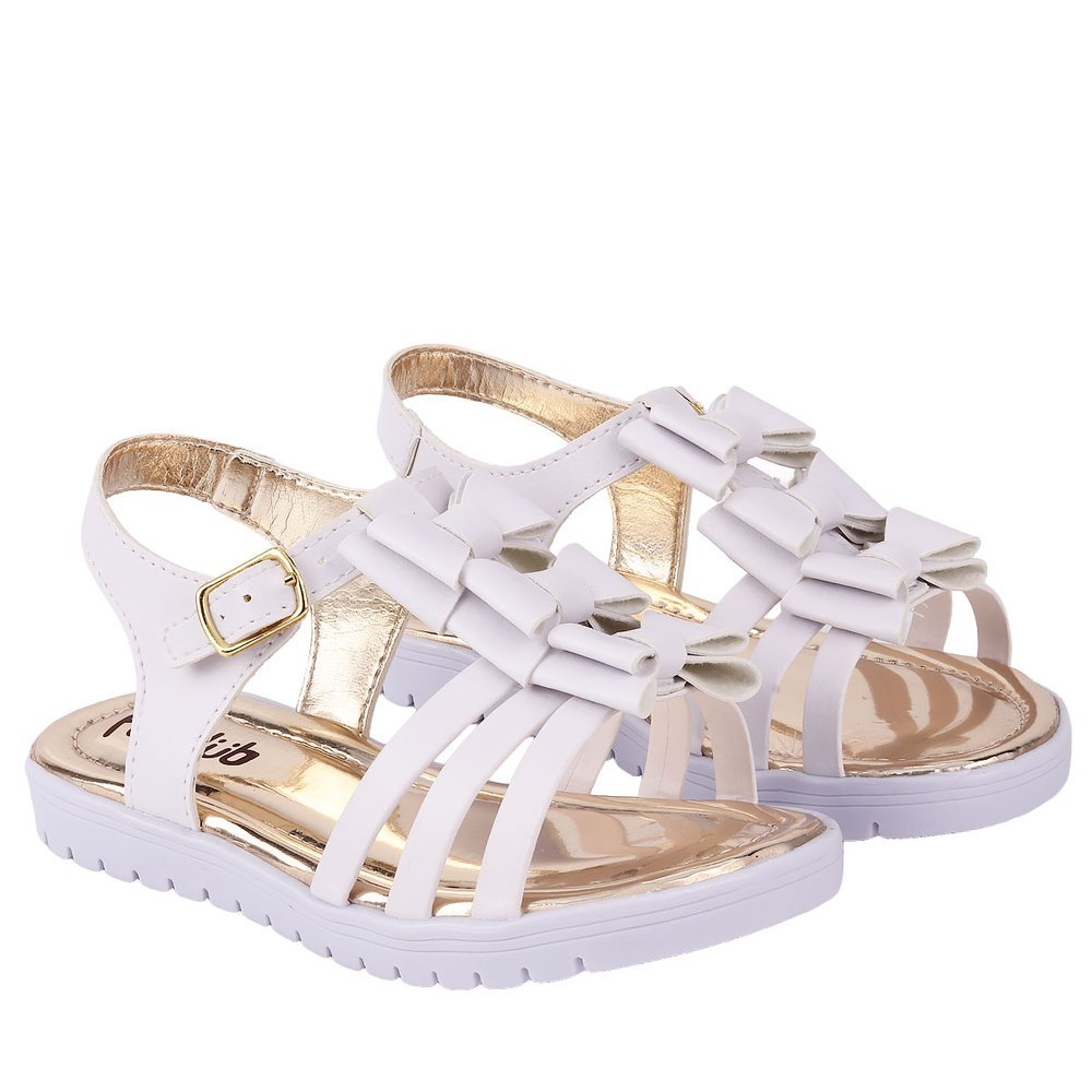 Sandália Infantil Feminina De Tiras Com Laço Fanclub - Branco