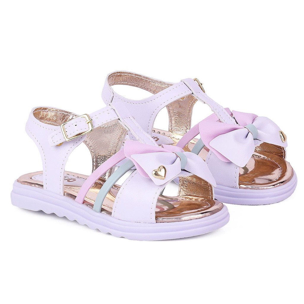 Sandália Infantil Feminina Fanclub - Branca com Tiras Coloridas, Laço e Coração
