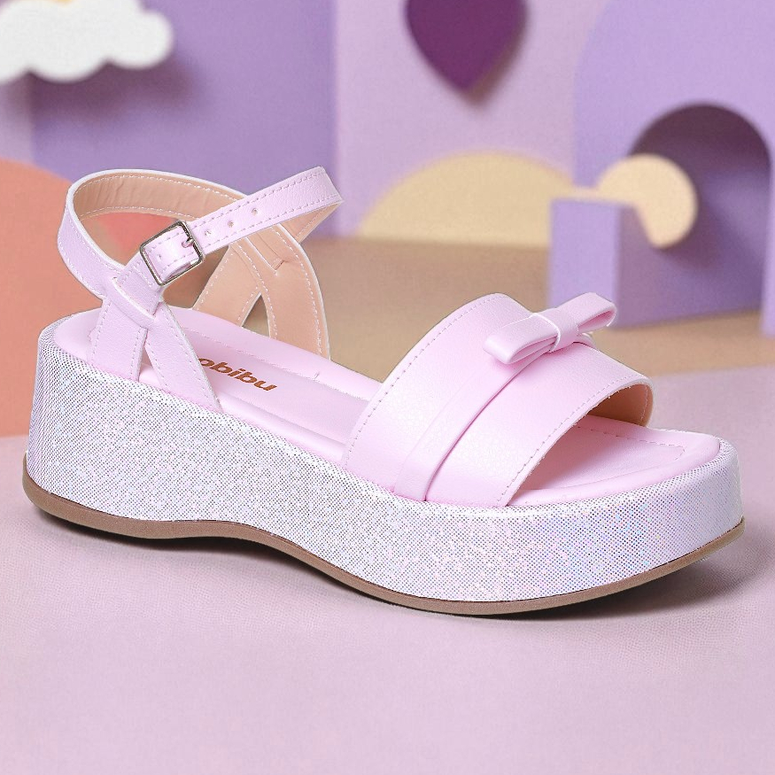 Sandália Infantil Feminina Plataforma Rosa Brilho Tendência Confortável