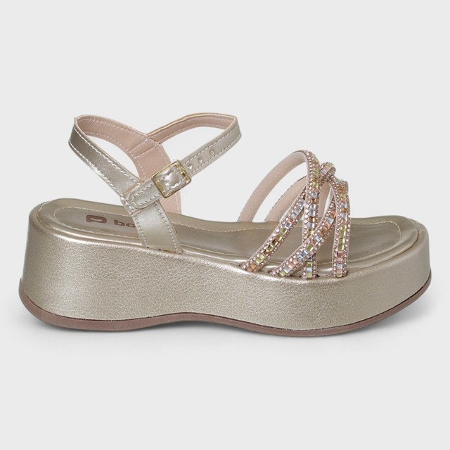 | Sandália Infantil Feminina Salto Plataforma Dourada Strass Confortá... este produto | R$ 129,90 | 13% | 5.0/5 | — |