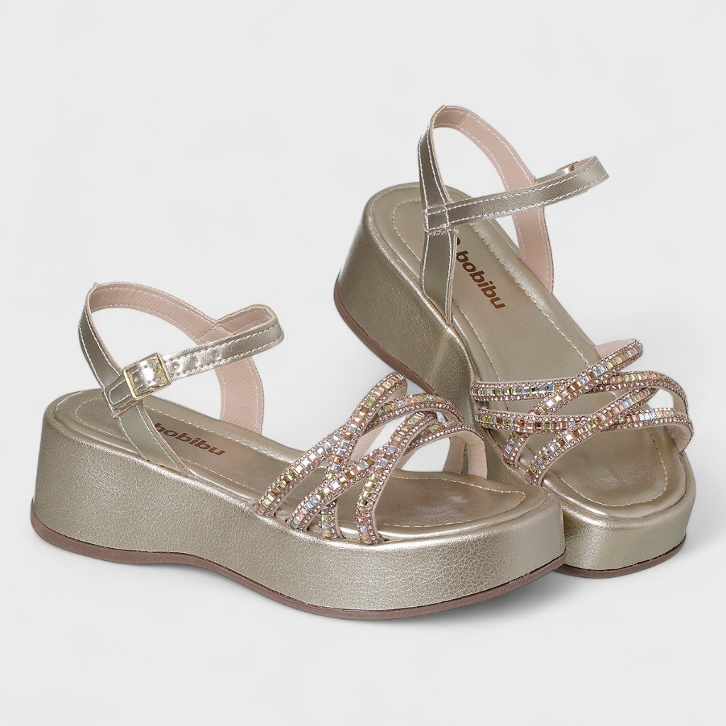 Sandália Infantil Feminina Salto Plataforma Dourada Strass Confortável Brilho Original