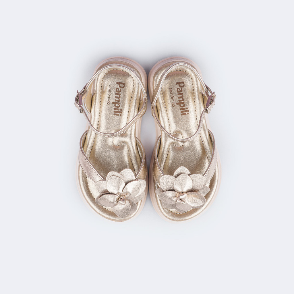 Sandália Infantil Feminina Sand Flower Flor Dourada Pampili