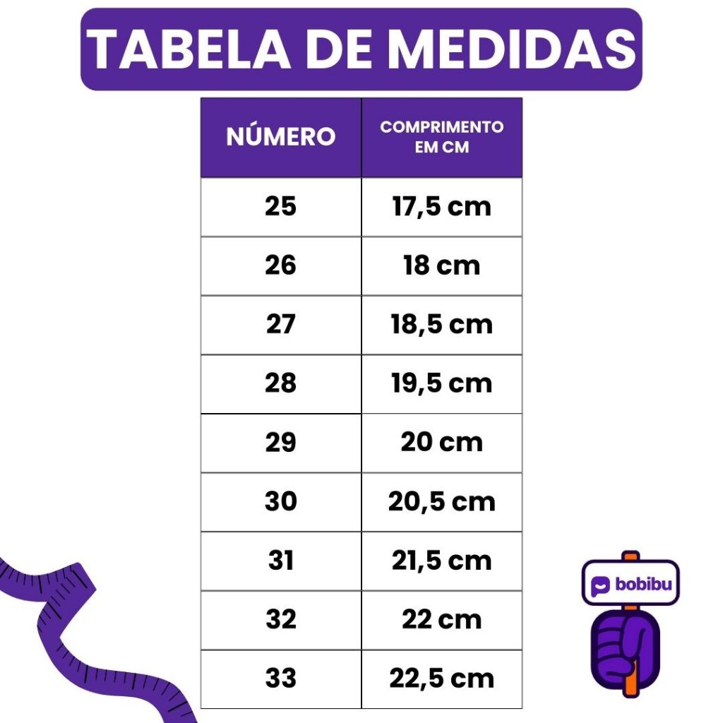 TABELA DE MEDIDAS N° 25 - 17.5 cm N° 26 - 18 cm N° 27 - 18.5 cm N° 28 - 19.5 cm N° 29 - 20 cm N° 30 - 20.5 cm N° 31 - 21.5 cm N° 32 - 22 cm N° 33 - 22.5 cm DESCRIÇÃO Olha só que delicadeza esse modelinho, uma verdadeira joia para os pés! Ideal para usar com calça, saia, vestido, jeans, camisetas, blusas neutras e estampadas. Ótima opção para montar conjuntos casuais e dia a dia. Por se tratar de um modelo básico e bastante clássico, ele tem a versatilidade e facilidade de se encaixar com as suas roupas, assim, você aproveita mais os estilos sem precisar renovar suas peças. Vem com a sola produzida em EVA macio o que ajuda a reduzir o impacto na pisada e proporciona mais conforto. LIMPEZA E CONSERVAÇÃO Evite usar substâncias abrasivas como álcool, detergentes ou solventes nos calçados. Nunca mergulhe na água ou os deixe de molho ou lave na máquina. A secagem dos produtos deve ser feita à temperatura ambiente e na sombra, nunca no sol ou em máquinas.
