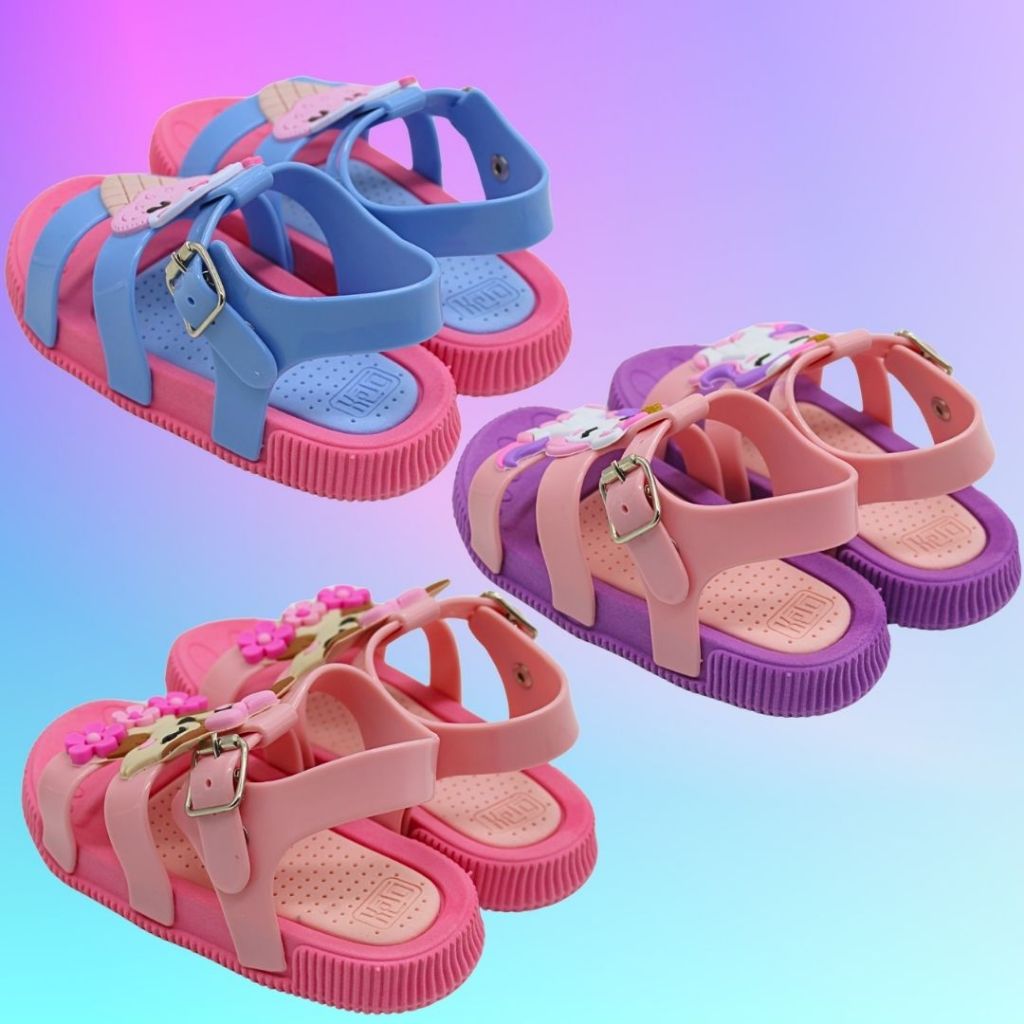 Sandália Infantil Menina Bicolor Confortável Antiderrapante Papete Aberta Ajustável Confortável