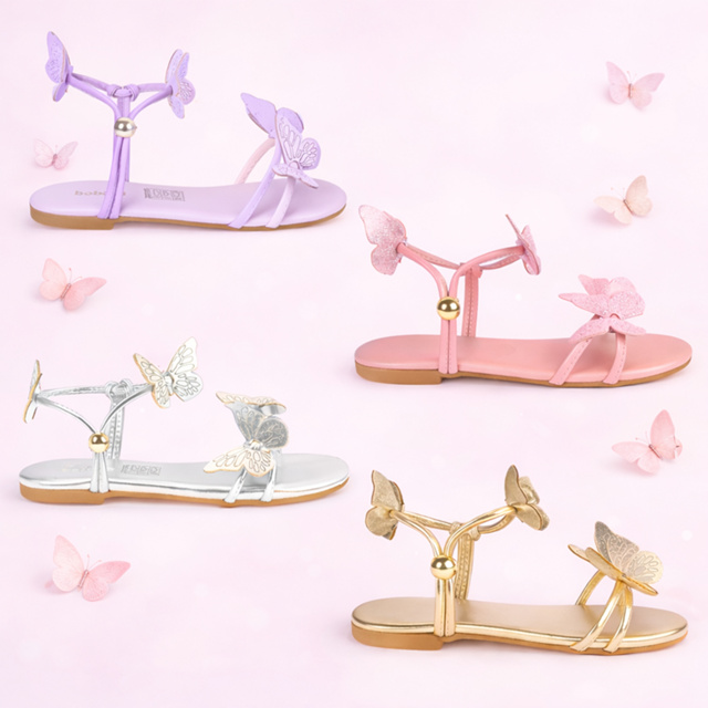 Sandália Infantil Menina Borboleta Delicada Casual Rasteirinha Blogueira Feminina