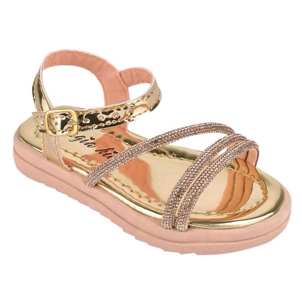 Sandália Infantil Menina Brilho Com Tiras De Strass Delicada Leve Confortável Antiderrapante Fivela