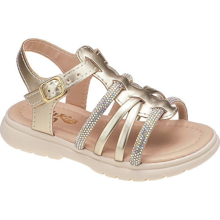 Sandália Infantil Menina com Tira em Strass Lily Kids Metalizada Ouro Light