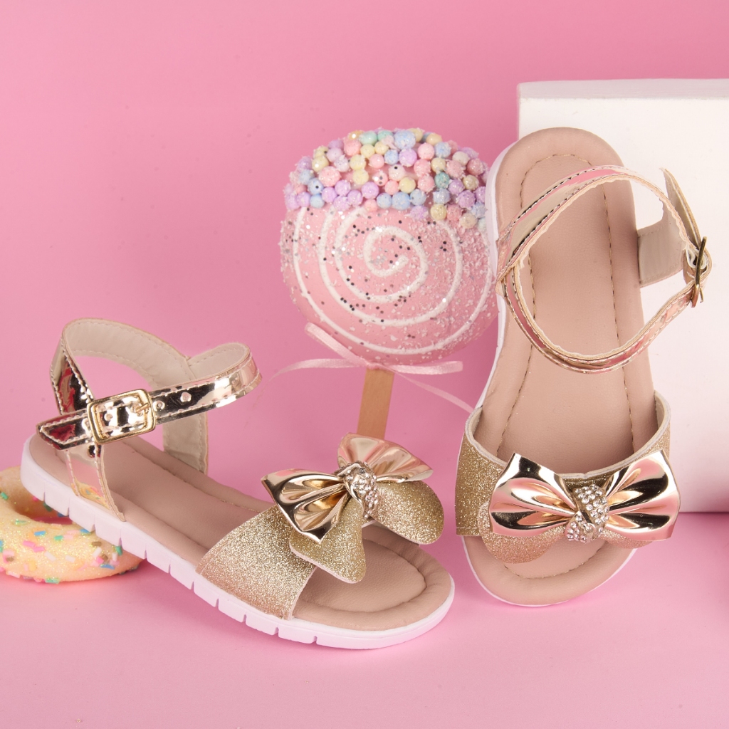 Sandália Infantil Menina Glitter Laço Feminina Super Confortável Casual Cores Festa Verão Dia a Dia