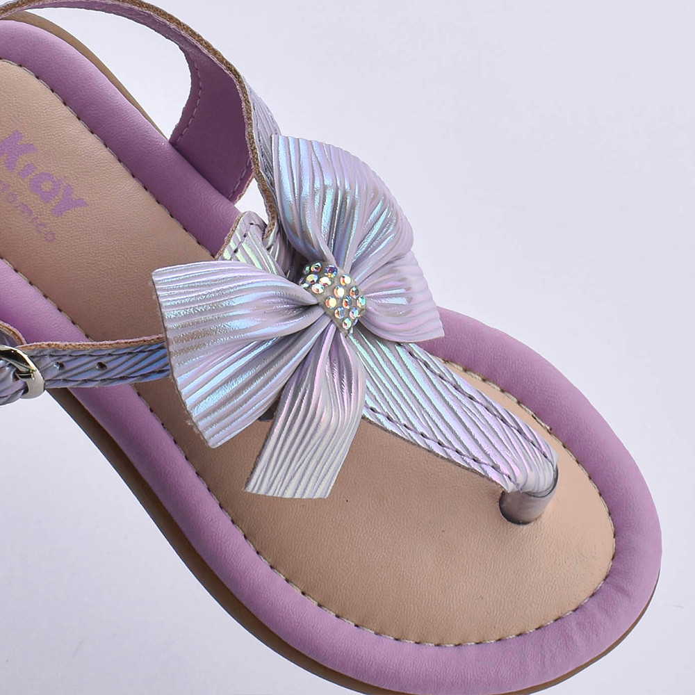 Sandália Infantil Menina Kidy Cristal Lilás Rasteira De Dedo Laço Brilhante Confortável Anatômico