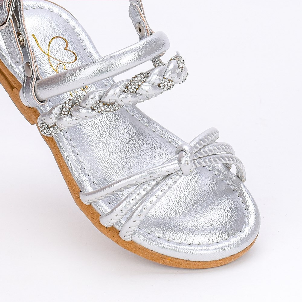 Sandália Infantil Menina Kidy Festa Brilho e Tiras Amar Conforto Prata Strass Papete