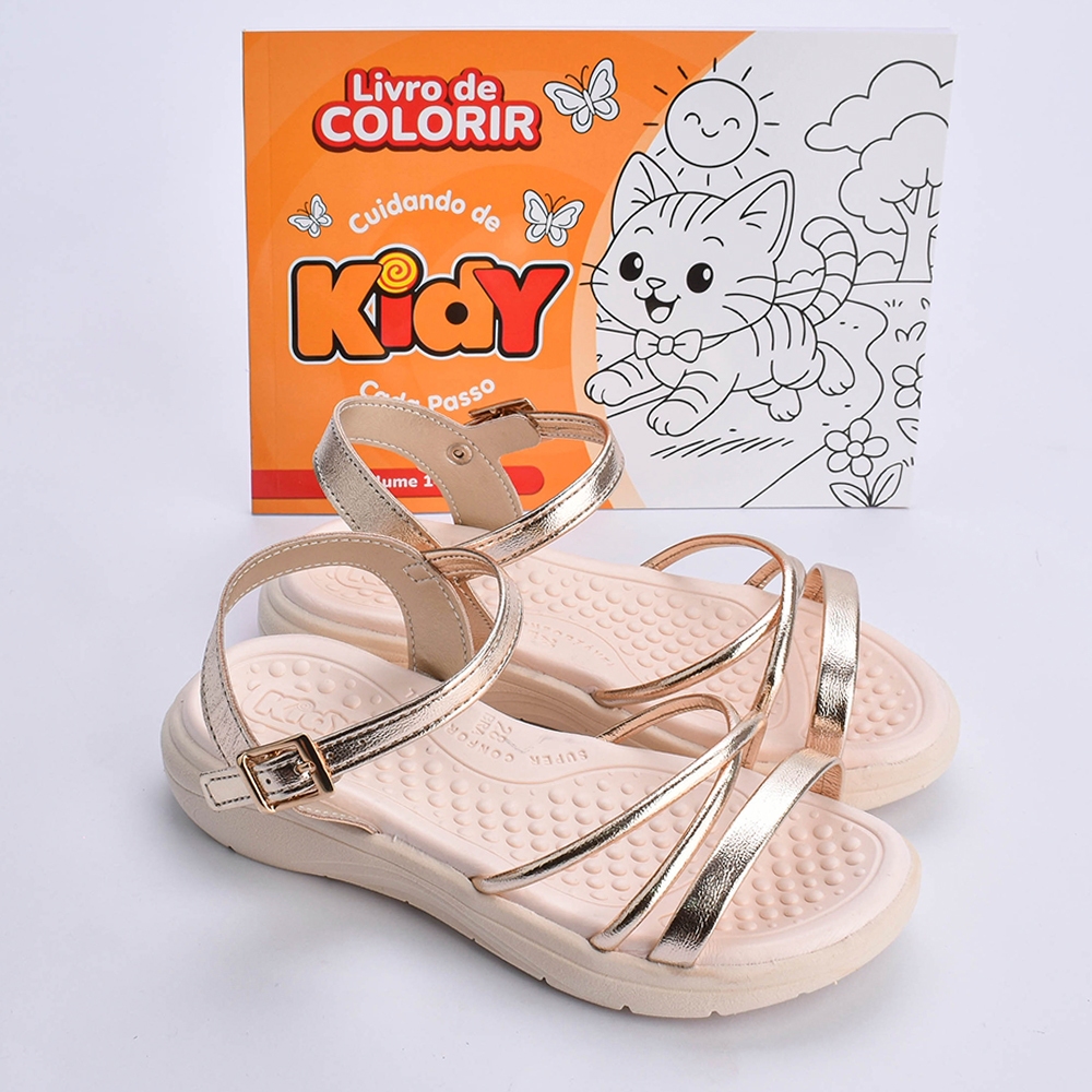 Sandália Infantil Menina Kidy Goods Fly Ouro Livro Colorir Anatômica Confortável Estilosa Metalizada