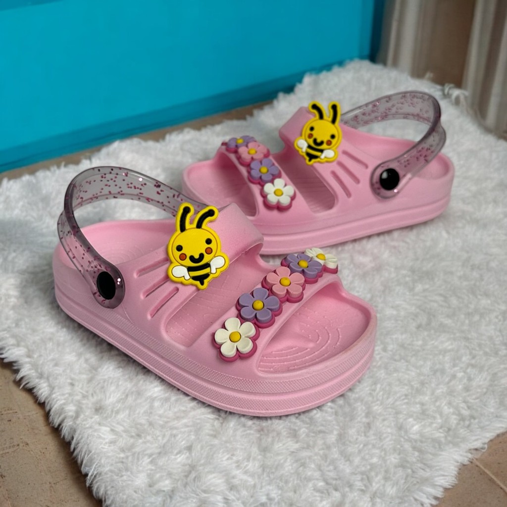 Sandália Infantil Menina Papete Feminina Abelha 5 Flores Macia Nuvem Confortável Criança