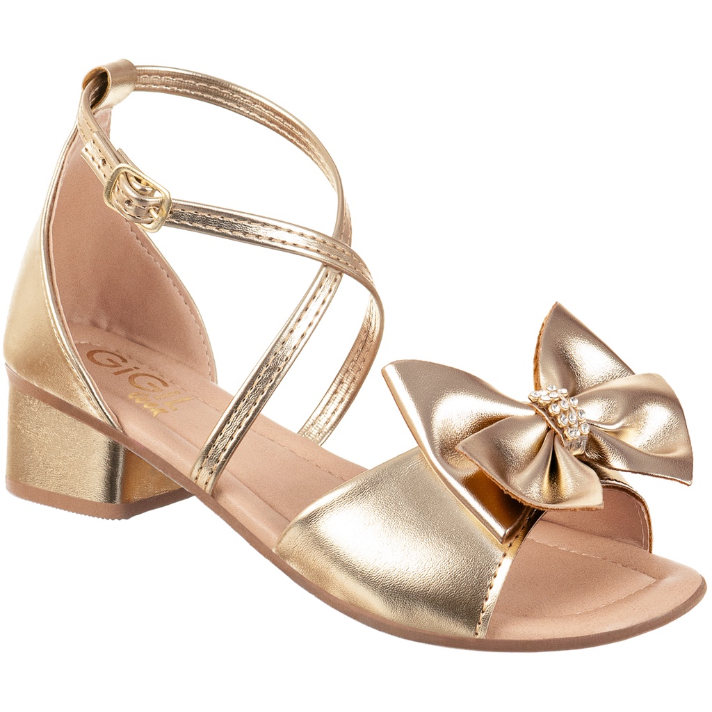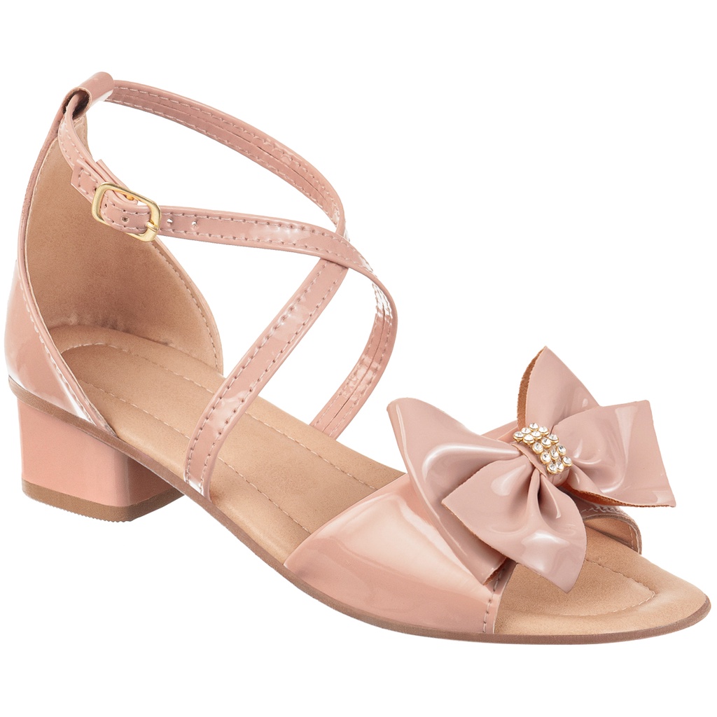 Sandália Infantil Menina Salto Grosso Baixo Enfeite Laço Grande Strass Brilho Festa Confortável Moda Tira Promoção Festa