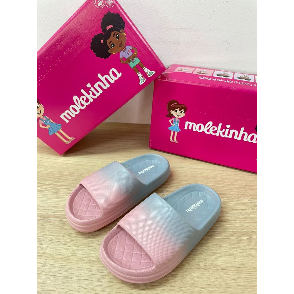 NOSSOS PRODUTOS SÃO ORIGINAIS ENVIADOS COM CAIXA E NOTA FISCAL ------------------------------------------------------------------------------------------------------------------------------------------------------------------------------ Ref. 2338.300 FORMA: Normal. Corresponde ao tamanho padrão. MATERIAL: EVA SOLADO: Borracha PALMILHA: Ultraconforto, macia com espuma PROTEÇÃO DO ENVIO: Caixa individual - Embalada com Envelope Plástico Resistente. FOTO REAL DO PRODUTO ------------------------------------------------------------------------------------------------------------------------------------------------------------------------------ GUIA DE MEDIDAS: N.27/28 - 18 - 19,5 CM N.29/30 - 20 - 21 CM N.31/32 - 22 - 22,5 CM N.33/34 - 23 - 23,5 CM N.35/36 - 24 - 24,5 CM *SUGESTÃO APROXIMADA DO REAL, PODE VARIAR DEPENDENDO DA GENÉTICA. ------------------------------------------------------------------------------------------------------------------------------------------------------------------------------ DESCRIÇÃO DO PRODUTO: Charmosa e confortável, o Chinelo Nuvem Molekinha é perfeito para compor looks delicados e estilosos. Confeccionada em EVA, com acabamento em duas cores nas variações e um toque de brilho, traz um charme divertido que dá um toque especial ao visual. Disponível nas cores pink/lilás e rosa/azul, conta com calce fácil e uma tira grossa, garantindo melhor ajuste aos pés. A palmilha é macia e oferecendo mais conforto no uso diário, enquanto o solado antiderrapante proporciona segurança ao caminhar. Ideal para passeios, festinhas e ocasiões especiais, essa rasteirinha une beleza, conforto e praticidade para as pequenas arrasarem por onde forem! ------------------------------------------------------------------------------------------------------------------------------------------------------------------------------ POSTAGEM: - Postamos seu pedido em até 24h úteis. - Sobre a Entrega Direta: Comprando até as 12h em dias úteis, seu pedido chega no mesmo dia. Pedidos feitos após esse horário serão postados no dia seguinte. - Realizamos as postagens em dias úteis, até às 16h. ------------------------------------------------------------------------------------------------------------------------------------------------------------------------------ PERGUNTAS FREQUENTES: - QUAL É O MEU TAMANHO? Verifique a tabela de medidas presente na descrição do anúncio. - QUERO COMPRAR MAIS DE UM PAR, COMO FAÇO? Para comprar mais de um par, basta selecionar a cor e a numeração desejada e adicionar o par ao CARRINHO. Para finalizar a compra, basta clicar no ícone do carrinho e seguir as etapas indicadas pela plataforma. - O PRODUTO É NOVO E ORIGINAL? Nossos produtos são TODOS originais, novos e enviados nas caixas com nota fiscal. - TEM GARANTIA? Todos os produtos contam com garantia de 30 dias. - É POSSÍVEL TROCAR O PRODUTO? Infelizmente a Shopee não permite trocas. Você pode devolver o produto e comprar novamente. No painel da sua compra no canto superior direito aparece o símbolo de interrogação (?). Clicando nesse ícone irá abrir a "Central de Ajuda", nela aparece a opção "Solicitar Devolução/Reembolso". ------------------------------------------------------------------------------------------------------------------------------------------------------------------------------ 5 DICAS PARA COMPRAR CONOSCO 1 - ENVIAMOS SEU PEDIDO EM ATÉ 24H ÚTEIS 2 - APROVEITE NOSSOS CUPONS DE DESCONTO 3 - PARCELAMOS EM ATÉ 6X SEM JUROS 4 - PRODUTOS A PRONTA ENTREGA 5 - GARANTIA DE SATISFAÇÃO