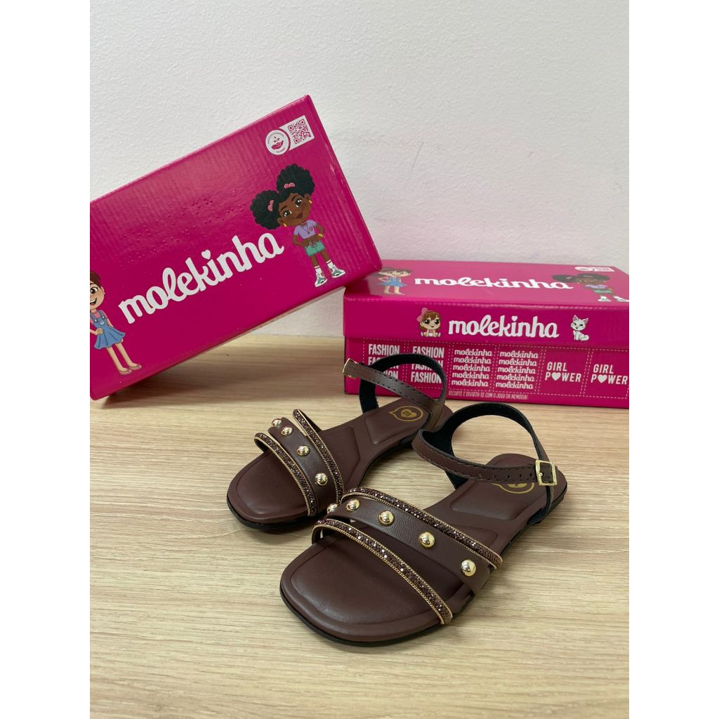 NOSSOS PRODUTOS SÃO ORIGINAIS ENVIADOS COM CAIXA E NOTA FISCAL ------------------------------------------------------------------------------------------------------------------------------------------------------------------------------ Ref. 2354.118 FORMA: Normal. Corresponde ao tamanho padrão. MATERIAL: Napa SOLADO: Borracha PALMILHA: Ultraconforto, macia com espuma PROTEÇÃO DO ENVIO: Caixa individual - Embalada com Envelope Plástico Resistente. FOTO REAL DO PRODUTO ------------------------------------------------------------------------------------------------------------------------------------------------------------------------------ GUIA DE MEDIDAS: 17 BR - 11,8 cm 18 BR - 12,4 cm 19 BR - 13,1 cm 20 BR - 13,8 cm 21 BR - 14,4 cm 22 BR - 15,1 cm 23 BR - 15,8 cm 24 BR - 16,4 cm 25 BR - 17,1 cm 26 BR - 17,5 cm 27 BR - 18,2 cm 28 BR - 18,9 cm 29 BR - 19,5 cm 30 BR - 20,2 cm 31 BR - 20,9 cm 32 BR - 21,5 cm 33 BR - 22,2 cm 34 BR - 22,9 cm 35 BR - 23,5 cm *SUGESTÃO APROXIMADA DO REAL, PODE VARIAR DEPENDENDO DA GENÉTICA. ------------------------------------------------------------------------------------------------------------------------------------------------------------------------------ DESCRIÇÃO DO PRODUTO: Com um design delicado e cheio de charme, essa sandália da Molekinha é perfeita para completar o visual das pequenas com conforto e estilo. Confeccionada em napa, ela possui palmilha macia e acolchoada que garante bem-estar durante todo o dia. O solado antiderrapante oferece mais segurança ao caminhar, enquanto o fechamento em fivela ajustável proporciona firmeza e praticidade. Disponível nas elegantes variações de cor nude e chocolate, é a escolha ideal para passeios, festas ou o dia a dia com muito charme! ------------------------------------------------------------------------------------------------------------------------------------------------------------------------------ POSTAGEM: - Postamos seu pedido em até 24h úteis. - Sobre a Entrega Direta: Comprando até as 12h em dias úteis, seu pedido chega no mesmo dia. Pedidos feitos após esse horário serão postados no dia seguinte. - Realizamos as postagens em dias úteis, até às 16h. ------------------------------------------------------------------------------------------------------------------------------------------------------------------------------ PERGUNTAS FREQUENTES: - QUAL É O MEU TAMANHO? Verifique a tabela de medidas presente na descrição do anúncio. - QUERO COMPRAR MAIS DE UM PAR, COMO FAÇO? Para comprar mais de um par, basta selecionar a cor e a numeração desejada e adicionar o par ao CARRINHO. Para finalizar a compra, basta clicar no ícone do carrinho e seguir as etapas indicadas pela plataforma. - O PRODUTO É NOVO E ORIGINAL? Nossos produtos são TODOS originais, novos e enviados nas caixas com nota fiscal. - TEM GARANTIA? Todos os produtos contam com garantia de 30 dias. - É POSSÍVEL TROCAR O PRODUTO? Infelizmente a Shopee não permite trocas. Você pode devolver o produto e comprar novamente. No painel da sua compra no canto superior direito aparece o símbolo de interrogação (?). Clicando nesse ícone irá abrir a "Central de Ajuda", nela aparece a opção "Solicitar Devolução/Reembolso". ------------------------------------------------------------------------------------------------------------------------------------------------------------------------------ 5 DICAS PARA COMPRAR CONOSCO 1 - ENVIAMOS SEU PEDIDO EM ATÉ 24H ÚTEIS 2 - APROVEITE NOSSOS CUPONS DE DESCONTO 3 - PARCELAMOS EM ATÉ 6X SEM JUROS 4 - PRODUTOS A PRONTA ENTREGA 5 - GARANTIA DE SATISFAÇÃO