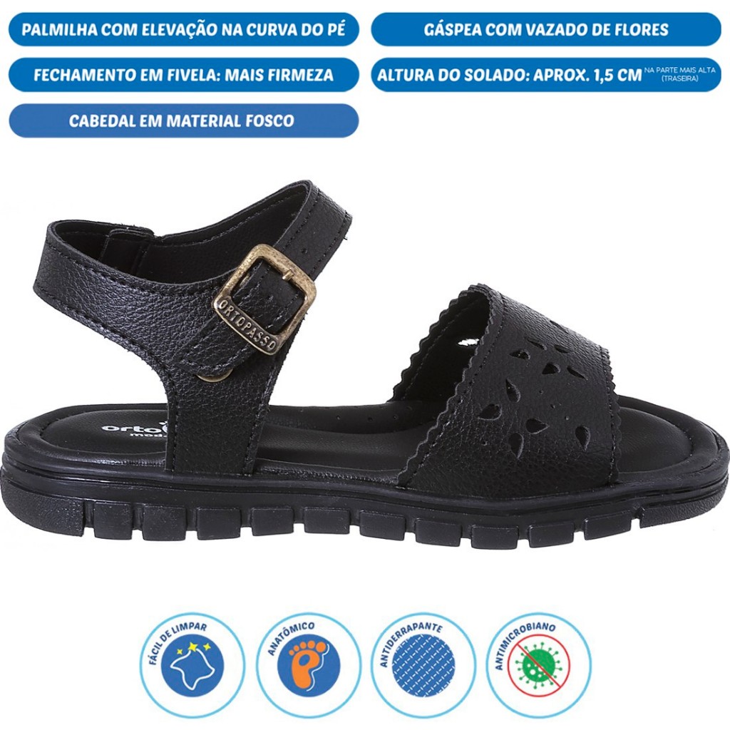 Sandália Infantil Ortopasso Anatômica Menina Feminina Escolar Macia Leve Delicada Confortável