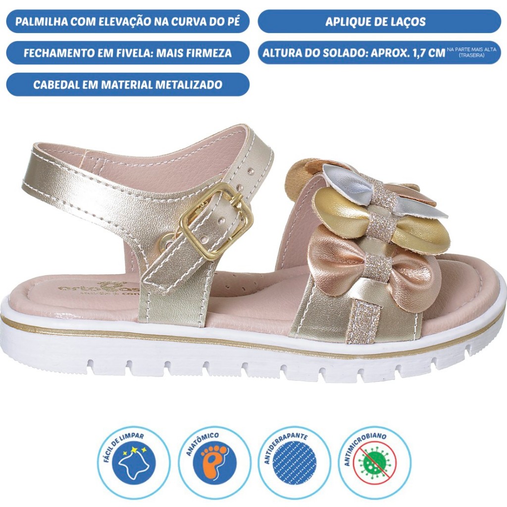 Sandália Infantil Ortopasso Cinderela Menina Feminina Laço Fivela 23 ao 32 Glitter