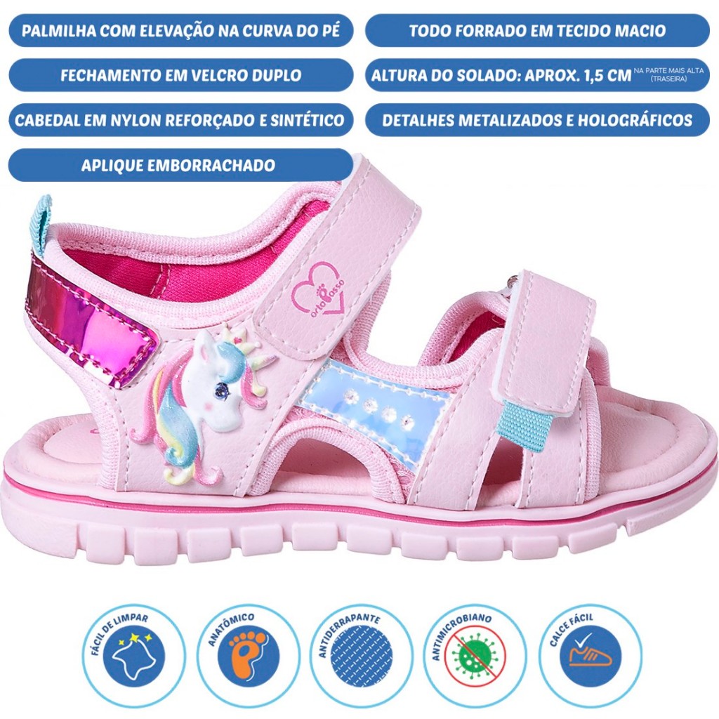 Sandália Infantil Ortopasso Cinderela Menina Unicórnio Fofo Moda Colorida Confortável Macia Leve