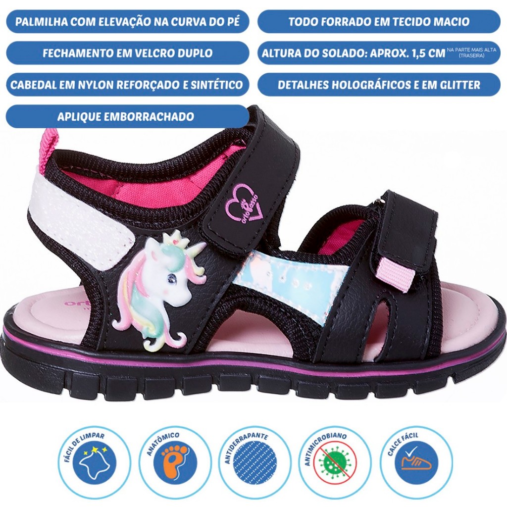 Sandália Infantil Ortopasso Cinderela Menina Unicórnio Fofo Moda Colorida Confortável Macia Leve