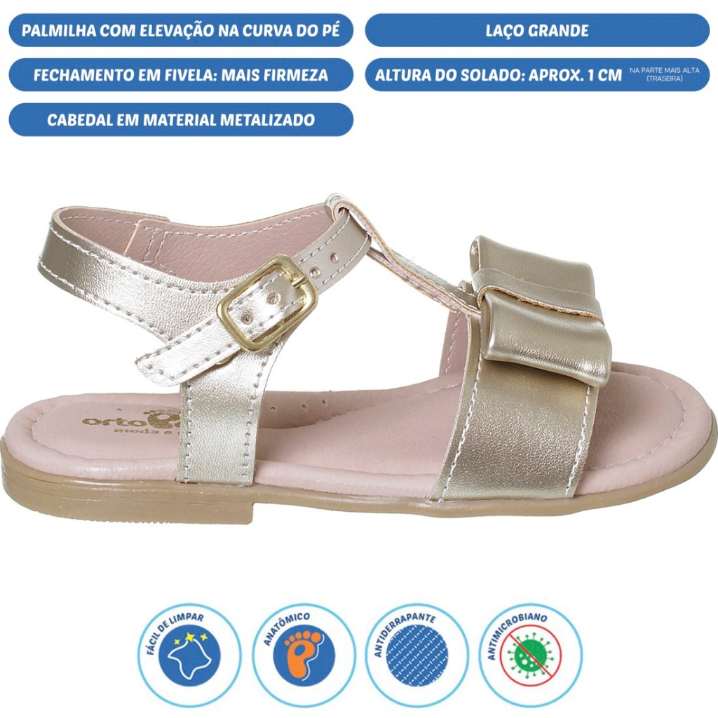 Sandália Infantil Ortopasso Flowers Eco Menina Bebê Fashon Laço Delicada Fivela Moda Macia Bonita