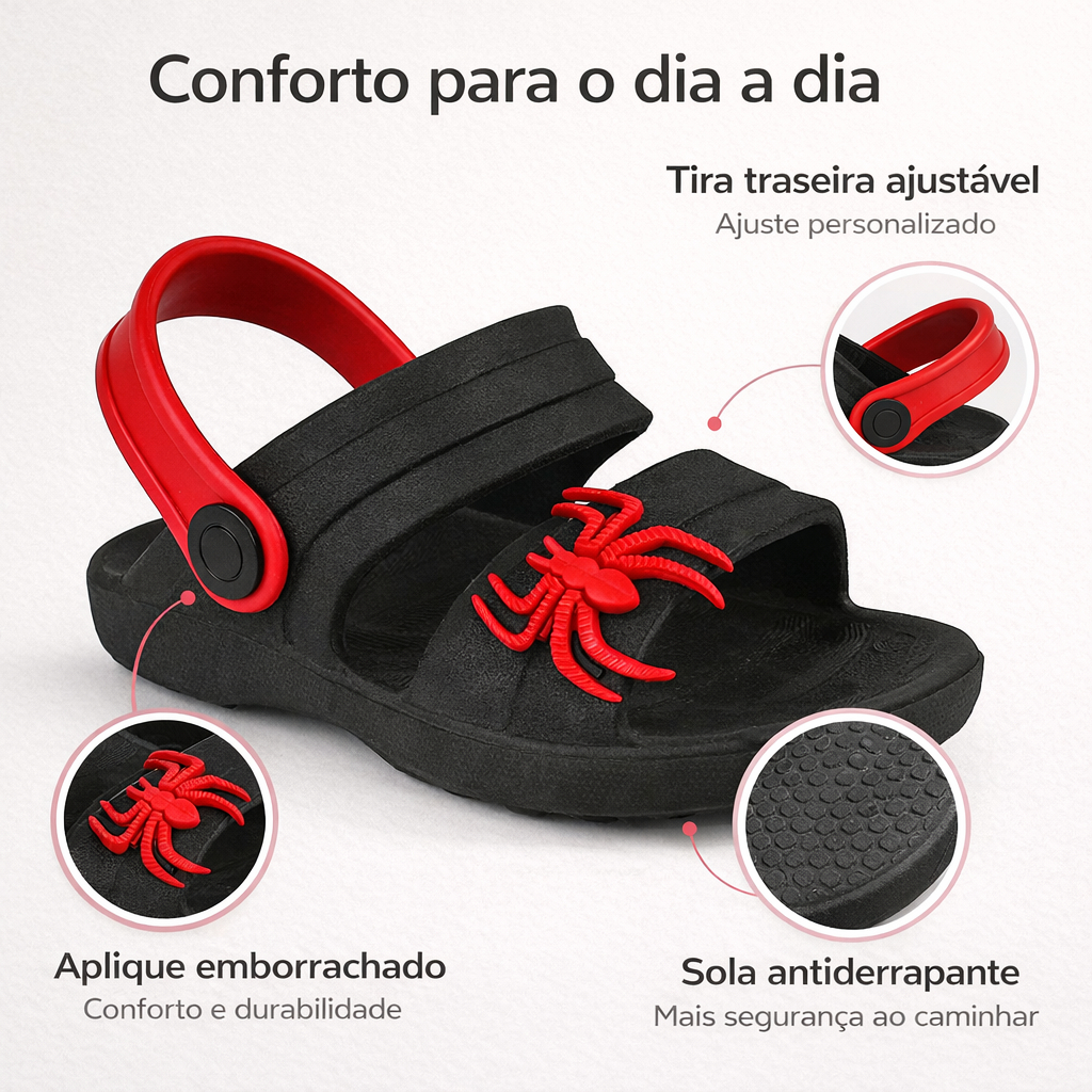 Descrição: • Sandália infantil confeccionada em EVA leve e macio • Design divertido • Tira traseira ajustável que garante firmeza e conforto • Ideal para o dia a dia, praia e momentos de lazer • Antiderrapante, fácil de limpar e super confortável Características: • Material: PVC • Solado: Antiderrapante • Fechamento: Tira traseira ajustável • Indicado para: Meninos • Uso: Dia a dia / Praia / Piscina 📏 Tabela de Medidas (palmilha interna): • 21/22 – 13 cm • 23/24 – 14,5 cm • 25/26 – 15 cm • 27/28 – 16,5 cm • 29/30 – 17,5 cm • 31/32 – 19,5 cm Dica: • Meça o pezinho da criança e adicione cerca de 0,5 cm para garantir conforto.