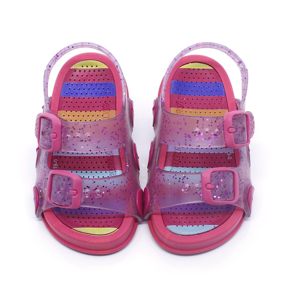 Sandália Infantil Plugt Menina Confortável Transparente Glitter Listras Pink Macia Leve Original
