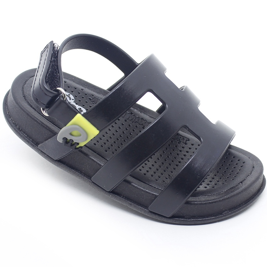 Sandália Infantil Plugt Menino Confortável Básica Tiras Preto Cinza Verde