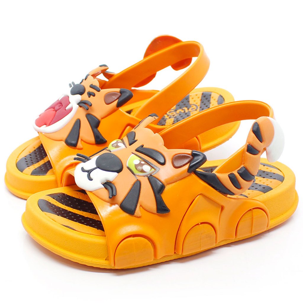 Sandália Infantil Plugt Menino Tigre Laranja Confortável Leve Antiderrapante Macia Moda Kids