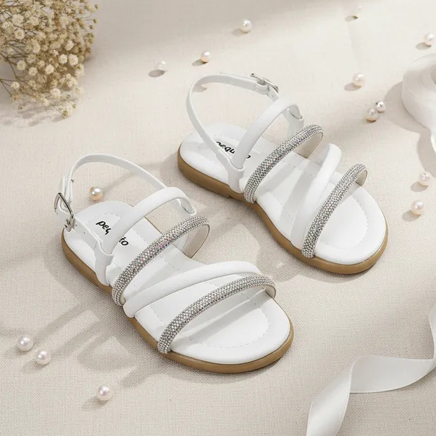 Sandália Infantil Rasteirinha Menina Brilho Strass Festa 15212 Pequito