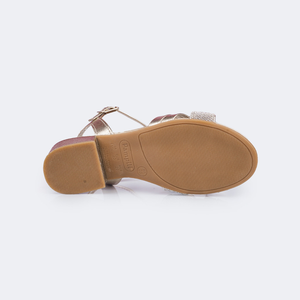 Sofisticação e conforto em cada passo elegante e delicado, essa sandália infantil é a escolha perfeita para deixar qualquer look mais sofisticado.O grande destaque é a manta de strass em hotfix, que adorna uma das tiras, proporcionando um brilho encantador e sutil. O fechamento em fivela "easy", sem pino, torna o calce mais fácil e prático, enquanto o material metalizado com aspecto de couro traz um toque moderno e sofisticado ao modelo. Para garantir segurança e estabilidade, o modelo conta com solado emborrachado antiderrapante e um salto de 3 cm, pensado especialmente para oferecer conforto sem comprometer o equilíbrio. A palmilha fachetada com espuma macia proporciona máximo conforto, tornando essa sandália perfeita para eventos prolongados.